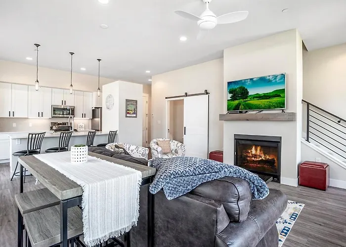 O apartamento Cozy Downtown Condo With Jacuzzi 5 Min To Resort oferece cozinha totalmente equipada, bem como quartos com varanda, escrivaninha e máquinas de café/chá. O Cozy Downtown Condo With Jacuzzi 5 Min To Resort é um apartamento que fica localizado apenas 1 km do Saint Bernard of Montjoux Catholic Church.